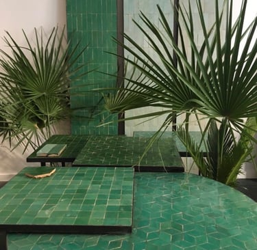 Jamil et Ryme sont frère et soeur. Ils ont grandi au Maroc. De leur enfance, ils ont gardé le goût des couleurs, des matières et de l'artisanat que leur a inculqué leur grand-père mozaiste. Des anciens ateliers de ce dernier à Fes, ils ont fait le lieu de production de leur entreprise. Les artisans marocains travaillent avec un grand savoir faire, le zellige, une terre cuite emaillée ou non.